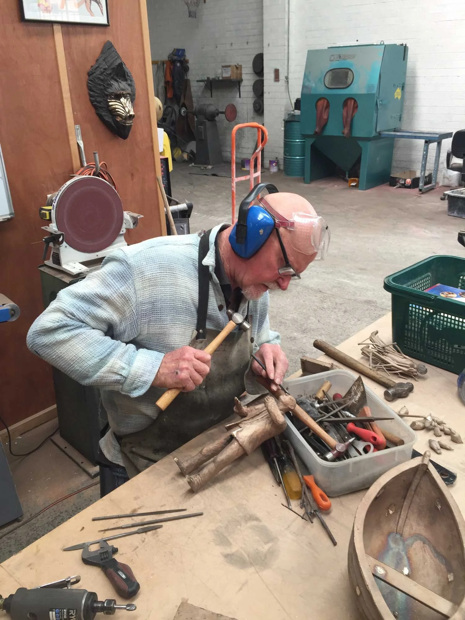 Jon working on one of his bronzes at Mal Wood Foundry in Melbourne.